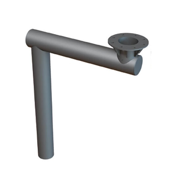 Г-образные консольные фундаменты В-20/12/Д372-1,7-б представляют собой цельнометаллическую конструкцию с фланцевым элементом в качестве узла крепления опоры. Для изготовления консольных фундаментов применяются трубы стальные электросварные прямошовные ГОСТ 10704-91 и прокат листовой горячекатанный ГОСТ 19903-74. Фланец изготавливают из листового металла способом вырезки на станках плазменной резки с ЧПУ. На фланце располагаются крепежные отверстия, через которые посредствам метизных изделий происходит соединение с ответным фланцем опоры освещения. Место стыка трубы и фланца дополнительно усиливается косынками.