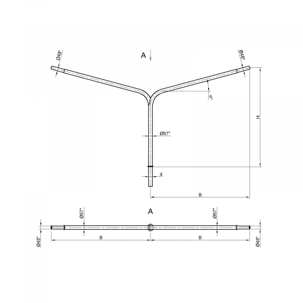 Двухрожковые кронштейны К3-1,3-2,0-1-1 предназначены для крепления светильника на трубчатой опоре освещения.
