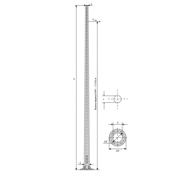 • 0,4 — вертикальная нагрузка в верхней точке опоры в тоннах (0,4т=400кг);